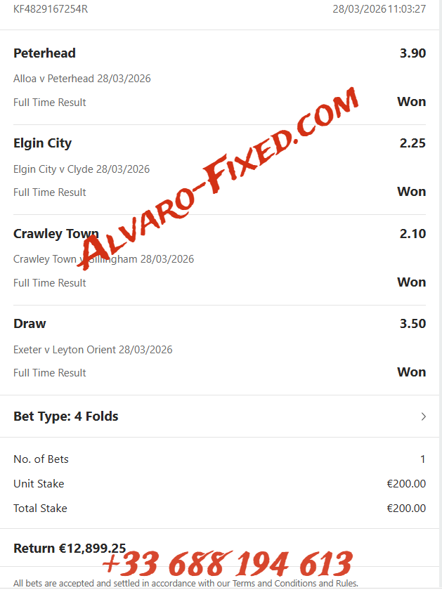 Also our matches are in 100% betting shops and you don't need to worry about that. We have licence and verification about selling sure matches. Our company have experienced players and best possible prices for our plans.