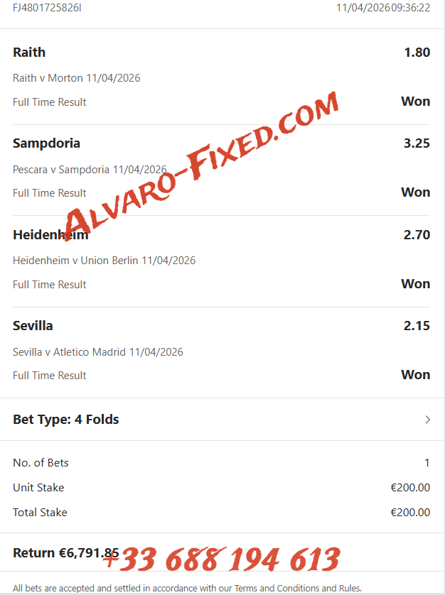 Telegram: @AlvaroFixedMatches