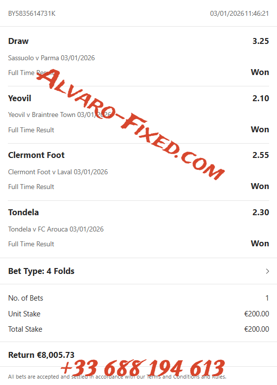 03.01.2026 – Saturday ( 40.02 odds ) – WIN
